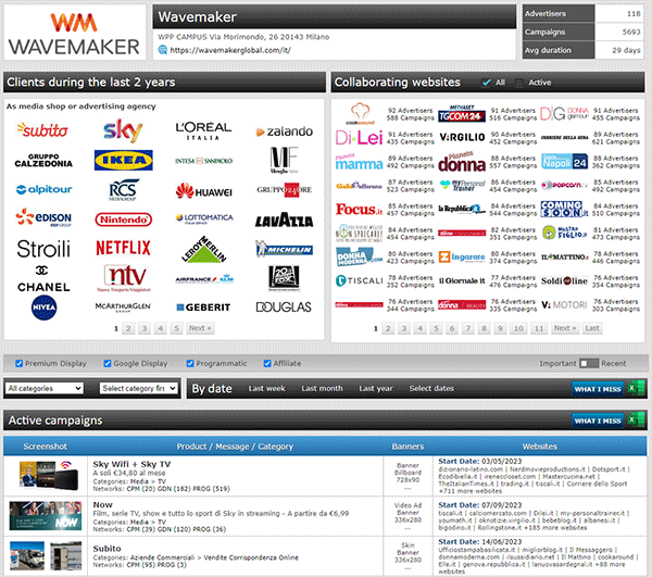 Know Your Competitors: Discover the clients they serve, the campaigns they launch, and the websites they collaborate with.