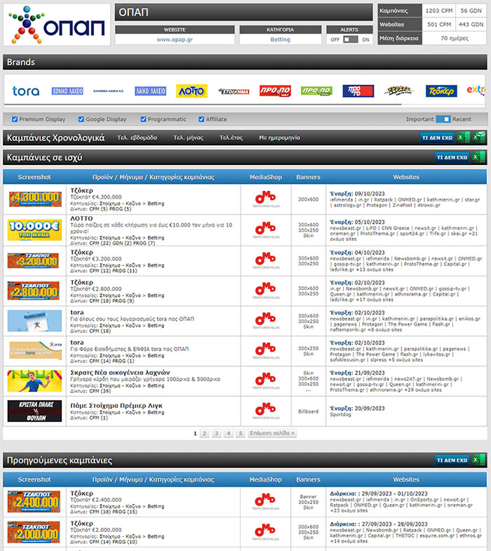 - Με την 360º κάλυψη που παρέχει το AdReport, δείτε πως διαφημίζονται εταιρείες του κλάδου σας όχι μονο στο display αλλά και στα social media και το YouTube.