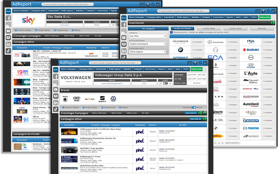 - Mappatura globale del mercato: Esplora l’intero panorama della pubblicità online, comprendendo i siti web per categoria o gruppo e le campagne per settore.